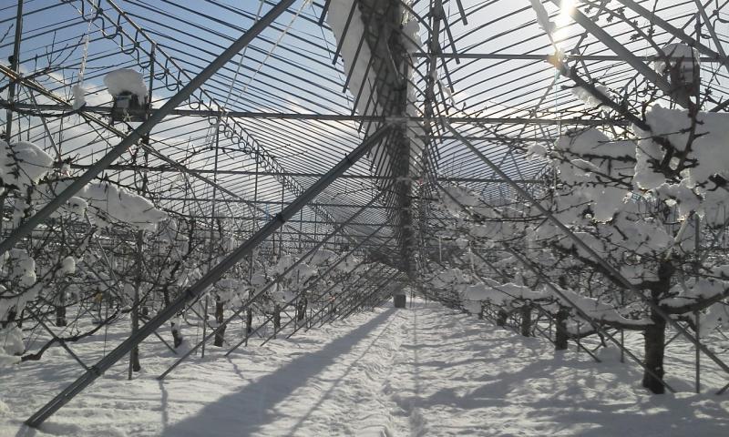 パイプハウスの雨樋や、小枝の多い枝に積もった雪を払う作業が仕事始めになりました。四年ほど前の大雪の時は、私の園地でも何本かの大枝が折れてしまい、もっと早く雪を払えばよかったと悔やんだことがありました。