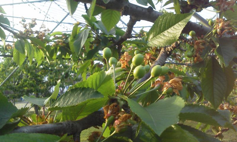 今、写真に写っている実を最後には二個だけ残します。今週末頃から摘果作業を総勢10人程で行うのです。