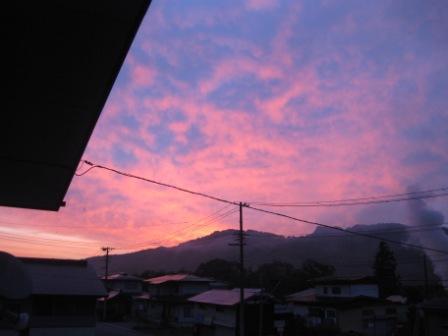 日曜の朝、東の空が紅色に染まっており、いやぁ美しいこと。