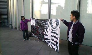 無事にフラッグに寄せ書き出来ました!フラッグを持っているのは、今回の企画者のお二人です。素敵な企画、ありがとうございます!そろそろ、会場が始まってます。先程、先行グッズ販売があり40分くらい並んでTシャツ買いました!前回よりデザイン良いですね。あと、一時間で開演です!