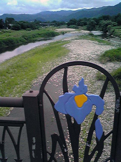 橋の手すりにあるあやめのオブジェが静かにその川を見つめているようでした。
