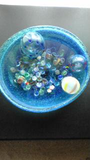 ガラス鉢に水を張り、ビー玉を沈めます。ここでオスス