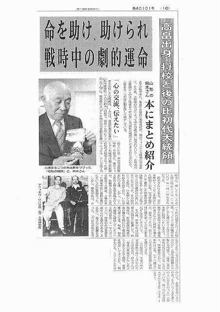 ▼フィリッピン大統領の恩人は高畠出身の神保中佐だった。
