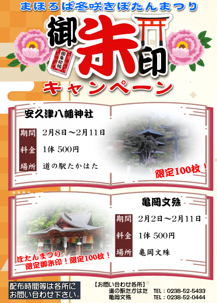「まほろば冬咲きぼたんまつり」に合わせて限定御朱印が配布されます