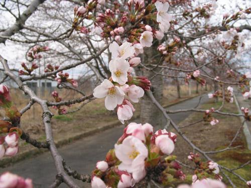 ここ最近、なかなか気温があがらなくて、桜の開花も進みません・・・と、思っていたら、いつも写真を撮っているところだけ咲いていました。しかし、全体的には、まだまだです。