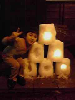 3日前から毎日作っては溶け作っては溶けで本番の今日は息子と2回目でやっと灯をともしました。