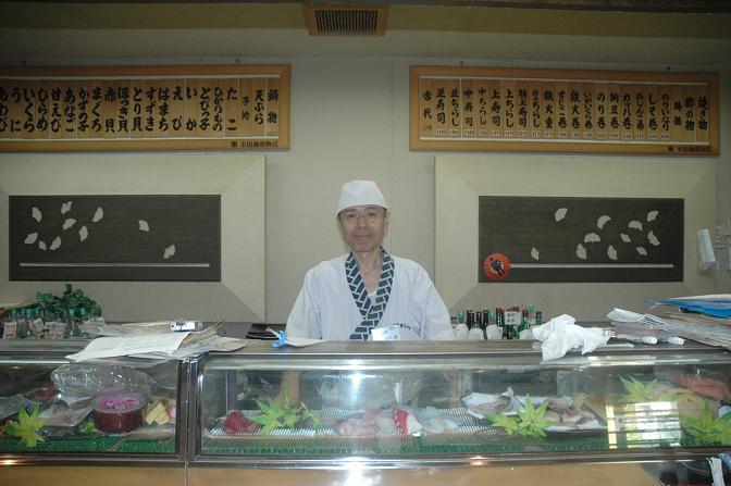 すしてつですしをにぎっている職人。けっこういけてますよ。