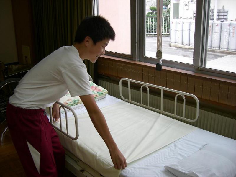 高齢者にやさしく元気に接していました。ベットを整えたり会話をしたりするのが主な仕事でした。職場体験をしている南中生にインタビューしてみました。