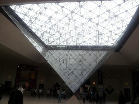ルーブル美術館の地下コンコースに、ガラスで出来た巨大な「逆さピラミッド」が