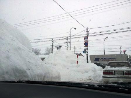 積雪もご覧のとおり、交差点周辺、3m以上ありました。
