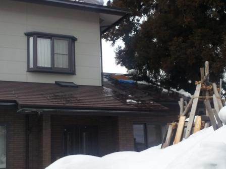 また、落雪の恐れがあるものと考え、まずはブルーシートで覆っておくことにしま