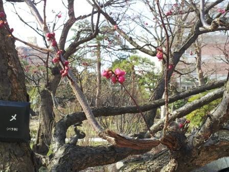 周囲には様々な木々が植えてあり、今頃の季節は「梅花」が、蕾から開花へと変化