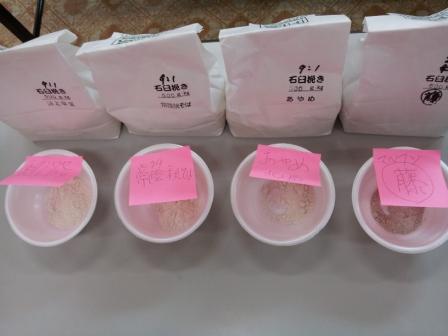 ナント7種類の「そば粉」を並べて、蕎麦打ち合戦!当然のことながら腕には全く