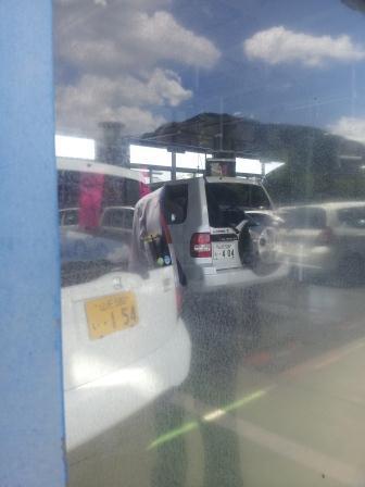 某車両整備工場のオーナーから相談を受けました。工場入口引き戸のガラスに付着