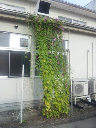 グリーンカーテンを3か所設けてみました。面積が大きいので全体的に覆いつくす
