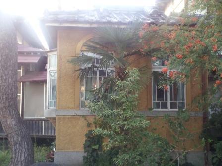 アーチ型の窓飾り、土壁とのコントラスト、平屋の佇まいとデザイン窓のバランス