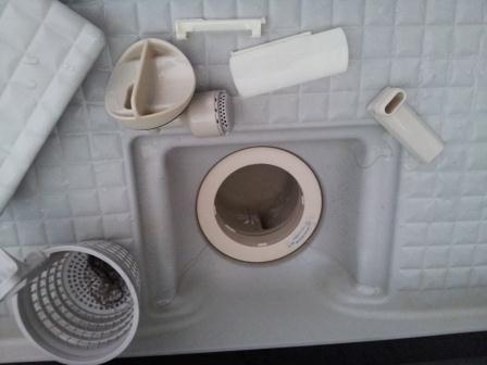に溜まったものが、網状の排水トラップに、クルクル廻りながらそのまま残るので