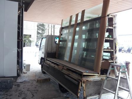 え作業を行います。本日は「10ミリの強化ガラス」への入れ替え作業です。降雪