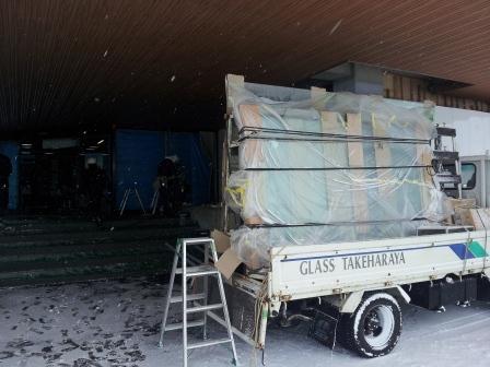 吹雪悪天候でも作業は続きます。この季節、突然「大雪」に見舞われることも多々