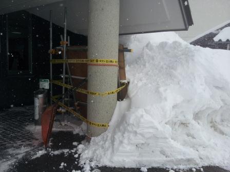 この画像は、「某道の駅」通路付近です。駐車場は勿論、通路まで屋根から落ちて