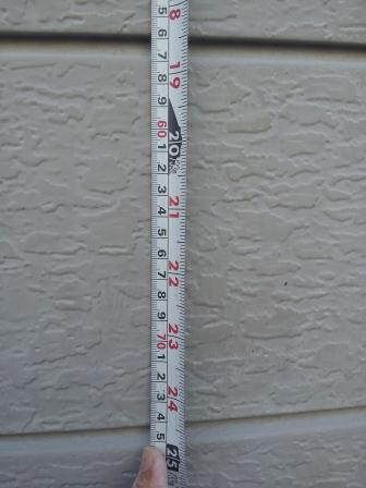 金属系サイディングに開口を設けます。外壁の横目地から推定すると、およそ2枚