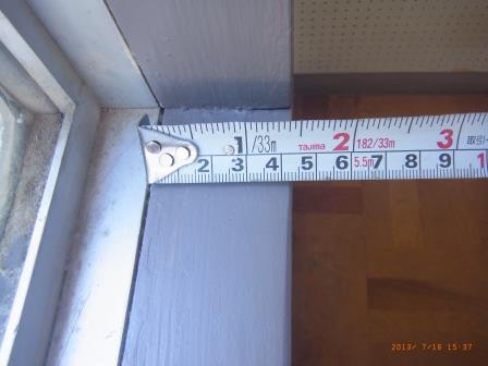 既存サッシの内側に設置するということで、さっそく四方額縁の寸法を測定する事