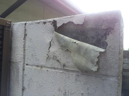 ブロック塀の汚れや塗装皮膜の劣化などにより、見るも無残な姿になっている箇所