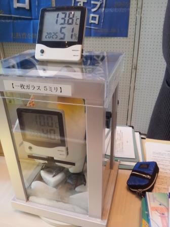んであります。5ミリ単板ガラスの表面温度は12℃、外気温が13.8℃、ガラ