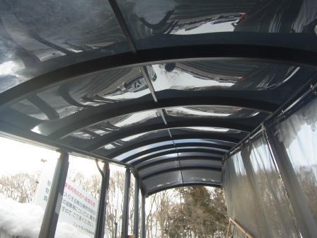 も高めで、湿った雪となり、樹脂屋根の傾斜に合わせて落下することが難しいよう