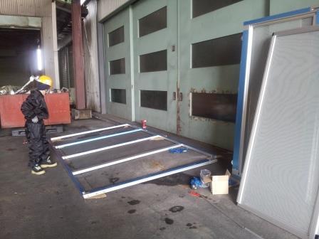 ずつ、丁寧に横から差し込んで、全部で4枚の「巨大網戸」送り戸が完成します。