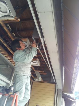 天井ボードを撤去し、本体を取付るためのブラケットを固定します。実際に取付け
