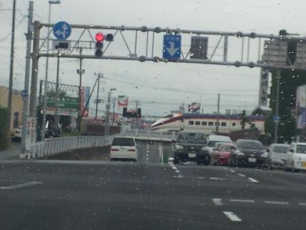 信号待ちのタイミングで、新型車両が徐行しながらゆっくりと山形駅方面に移動して