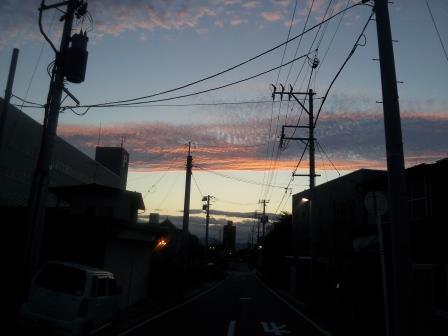 夕暮れ時の西方向、日中の「暑さとの奮闘」とは真逆に、穏やかな夕焼け雲が美しく