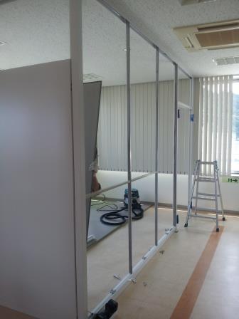 パーテーションの設置に関しては、位置決めを行ない、次の作業手順として、下地材