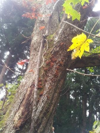 を発見いたしました。よくみると、この巨木の周囲、至るところに数多くはりついて