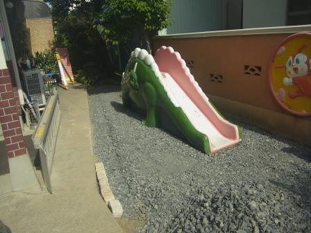 遊具が固定されていて、移動が難しい、当初は人工芝を敷き込みしてから、その上
