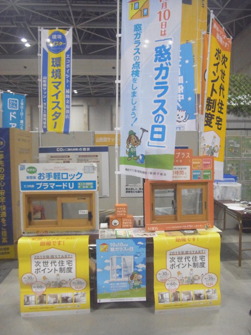 「みんなで実践!」未来に向けて、やまがた「環境展」に山形県サッシ・ガラス協同組合として出展してまいりました。令和のエコライフ、ストップ温暖化は、地球上の我々、人類に課せられた、最大の課題です。先送りに絶対しない!決意を新たに今年も、参加してまいりました。ブースを出展し、来場者の皆様へ、丁寧に説明をさせて頂きました。もちろん、「窓バンク」のPRも。