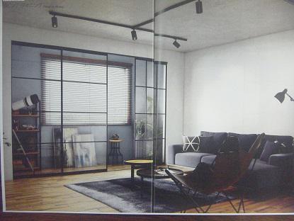 窓辺と居住空間との境目に、スリムなフレームのスタイリッシュな間仕切りによる素敵なスペースがインテリアテイストにフィットします。ソファーにすわりながらくつろぎの空間を共有、やすらぎ生活への喜びを感じます(^_-)-☆