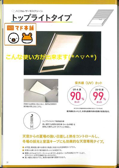 ハニカム・サーモスクリーン*トップライトタイプのご紹介デス(^-^)!冬場の採光と室温キープにも効果的な「天窓専用タイプ」➡開閉システムはワイヤーテンション式デス(^-^)左右のレール内を通るワイヤーより、高い場所に取付けても、専用の操作棒で開閉が可能です(*^▽^*)