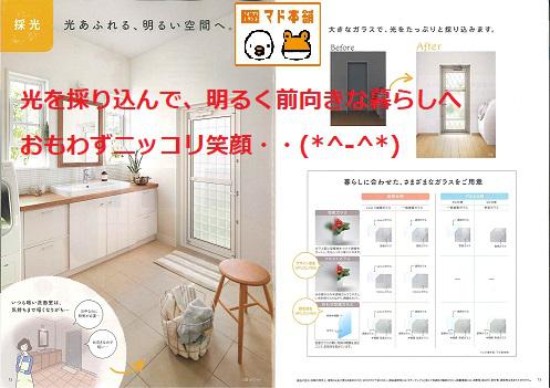 *リシェント*勝手口ドアには、「大きなガラス」を使用していますので、採光の面積が大きいこともあり、日々、明るい気持ちで過ごすことが出来ます('ω')ノ