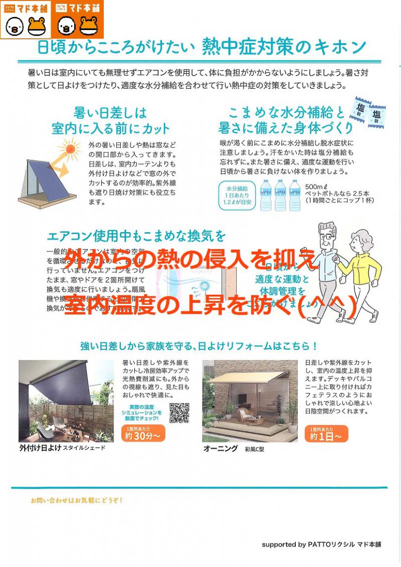 👉B外からの熱の侵入を抑え、室内温度の上昇を防ぎましょう