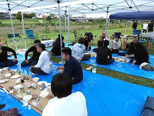 馬見ヶ崎川河川敷で芋煮とバーベキューをしながら楽しく交流できました。