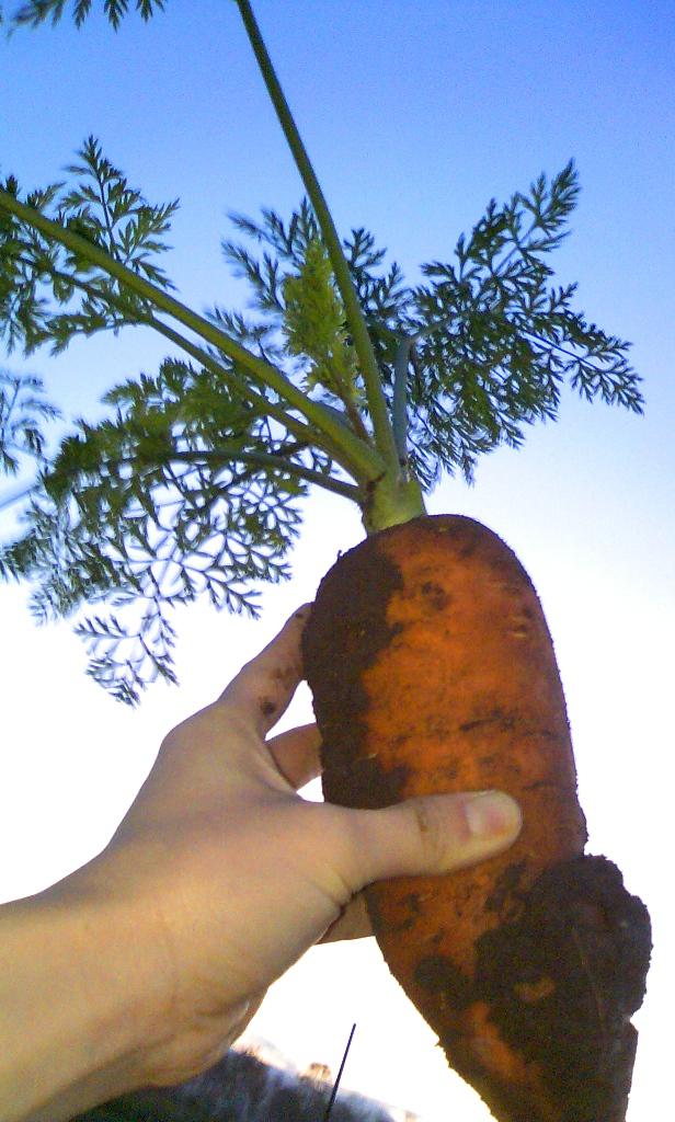 そして昨日収穫!きれいな色の立派なニンジンが顔を出しました。