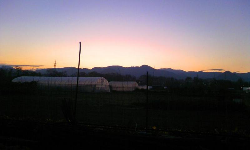 でも、こないだ晴れた日に畑から見た夕焼け空は、