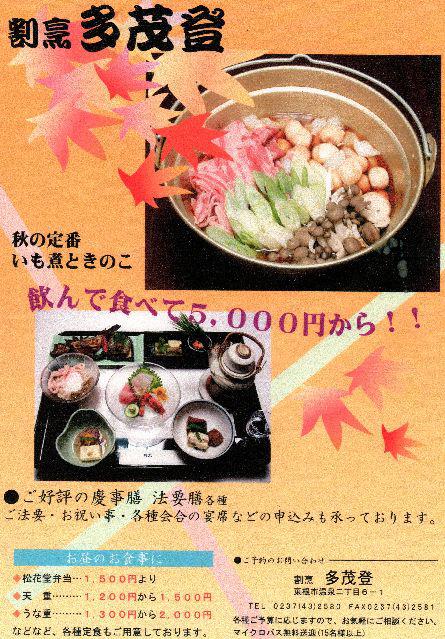 割烹多茂登では、秋の芋煮会のご予約承っております。