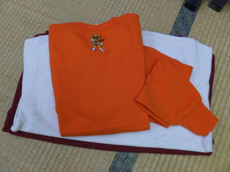 おそらくカラー刺繍入りのトレーナーやパーカなどサイズを変えて2〜3枚と
