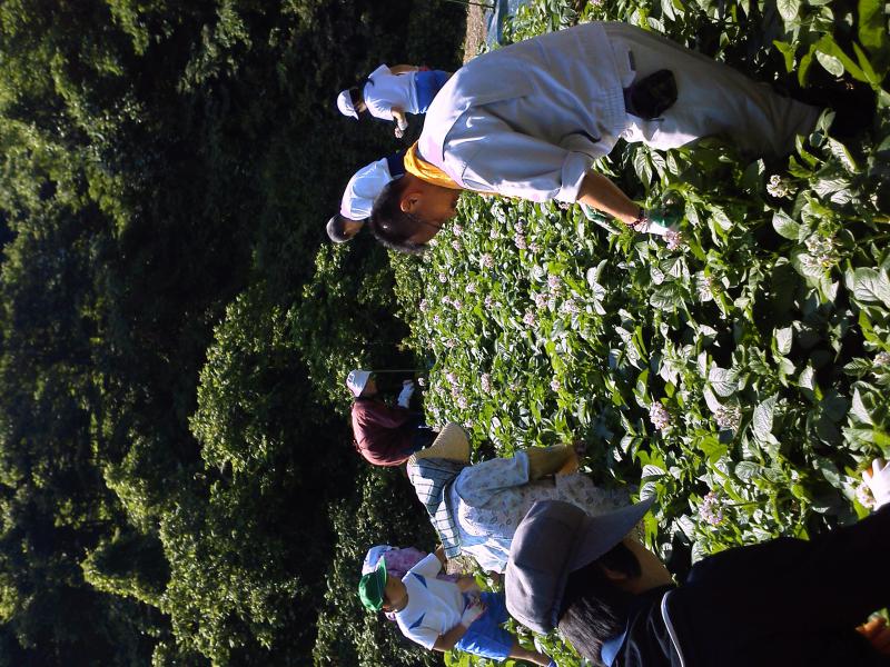 大人の腰の高さまで伸びたジャガイモの茎を折らないように、子ども達は一斉に摘み始めた。