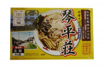 琴平荘ラーメン  内容量:麺120g×4・スープ42g×4         山形県鶴岡市の名店「琴平荘」の中華そばを再現しました。醤油味のスープと生麺が絶品です。 |