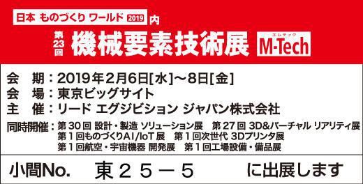 2019年2月9日〜2月8日の3日間東京ビッグサイトで開催される機械要素点に出展します。