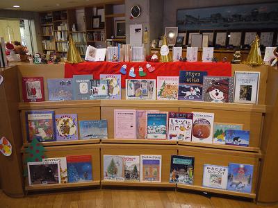 図書館ではクリスマスの絵本や関連の本を展示しています。